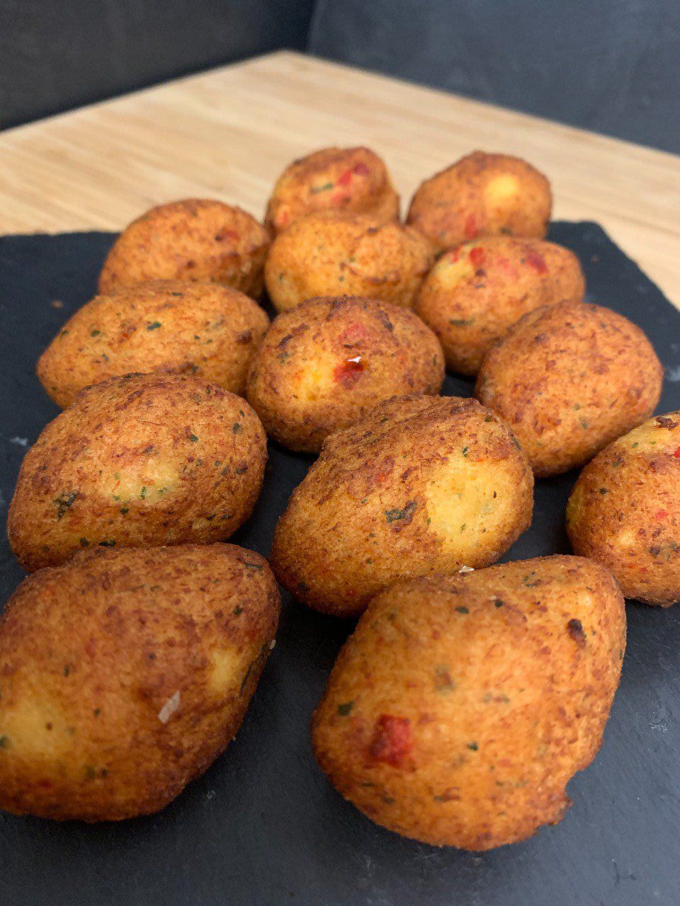 Et Toque ! Traiteur vous propose pour votre réveillon 6 délicieux accras de morue au piment d’Espelette AOP. Personnalisez votre assortiment de mises en bouche pour un événement varié et réussi !